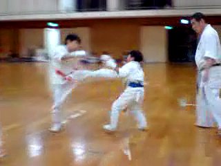 優勝した田辺君は現空研空手の典型的な組手の名手で突き、蹴りともバランスが取れています。